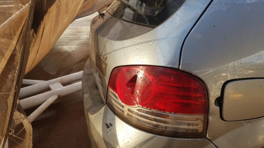 El temporal provocó la voladura de chapas, caída de ramas y diversos daños materiales en distintos puntos de la ciudad. Entre las zonas más afectadas se destacaron sectores de la ex ruta 213 y el estacionamiento del hipermercado Chango Más, donde se registraron destrozos visibles tras el paso de la tormenta.